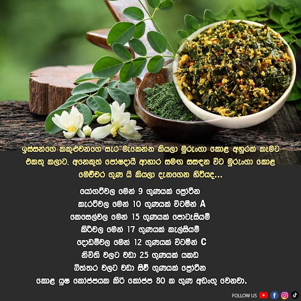දීර්ඝායුෂ ශාකය ලෙස හඳුන්වනු ලබන කරල් මුරුංගාවල රස ගුණ නො දන්නා කෙනෙක් නෑ. ඒත් මුරුංගා කොළ වල ඇති විස්මිත ගුණ දන්න අය නම් අඩු ඇති.